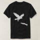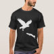 A red tail hawk chasing a squirrel in bold white silhouette.
