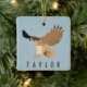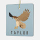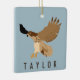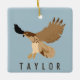 This personalised Christmas ornament features an illustration of a red-tailed hawk in flight in tan and brown against a light blue background and your own name or short message. Find coordinating spotted hawks themed gifts and products in the Hawk and Blackbird Collection from Asterisk Designs.