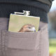 The flask itself is fine. It’s a cheap flask, obviously bought in bulk, however am prepared to overlook that. Given that it is a personalized item, I would have liked to have seen gift boxing instead of the generic packaging. Terrible printing, and/or quality. It’s a cheap, tacky vinyl. It is not cut straight and is also applied in a way that it is overhanging the bottom, causing the glue to catch on items and it will eventually roll and tear, damaging the wrap.