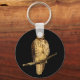 This keychain features a female Red-Tailed Hawk (Buteo jamaicensis). One of the most widespread and commonly observed birds of prey in North America, this fierce hunter is perched on a branch high up in some evergreen spruce trees, patiently waiting for a meal to appear. Her head is brown and the creamy white breast has brown spots. The red tail only is seen from the back.
