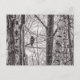 A black and white photograph of a hawk perched on a branch in a group of trees. Image Copyright ©2024 Kimberly J Tilley. zazzle.com/store/developingnature