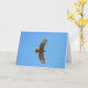 Photo of a red-tailed hawk flying with a mouse in its beak. The hawk's wings are outstretched against a blue sky. You can customise this hawk picture with your own text and have it printed on many different products.