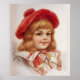 Sweet vintage girl is wearing a cute red Tam. She has a matching scarf and is richly detailed.
