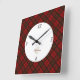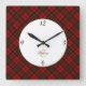 Red tartan Christmas plaid winter pattern Monogram Square Wall Clock