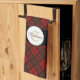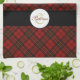 Personalise elegant hand tea kitchen towel with your initial and name. Lovely festive Red plaid tartan pattern by PLdesign.