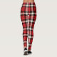 Stylish women's leggings made of cotton leggings with a design of dark colourful red tartan. Comfortable wide strap. High quality product. It looks modern and stylish. Comfort dressing for sports.