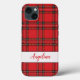 A gorgeous red tartan patterned phone cover. Customise the red black plaid design with your own name.
