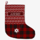 Red Tartan Plaid Snow Flake Cute Monogram Large Christmas Stocking