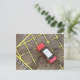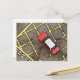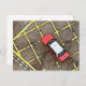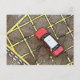Postcard with digitalised photo of a red taxi in Hong Kong.