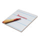 A handwritten style tile with a bright red coloured teacher's correcting pencil laying on a white sheet of lined school paper. Personalise this scholastic design by signing your name. Perfect for writers, teachers, or students in middle school or junior high.