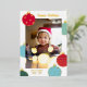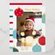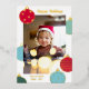 Fun and colourful Christmas photo card with Christmas baubles in red, teal, and blue with gold foil outlines and patterns. Wish your friends, relatives, and neighbours happy holidays with this colourful happy holidays card with baubles in different colours with gold foil details personalised with a photo of your children or your family.