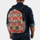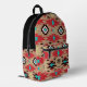 This colourful backpack has a beautiful Native American pattern in red, teal, black, yellow, and brown. Your monogram is in black on a matching tan circle banner on the pocket. A distinctive pattern with a western flair! Be sure to see the matching products in our store.