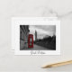 Postcard of a selective colour photo of a red telephone box in the city centre of London, UK with the Big Ben in the background on Remembrance Day with a white border and the tekst: 'Great Britain'.