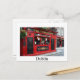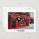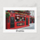 Postcard of the famous red pub with the hanging flowers baskets in Temple Bar district in Dublin, the capital of Ireland with a white border and the text 'Dublin'.