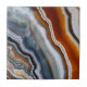 This is a high-quality multicolored white, black, blue, grey, orange, gold, brown and terracotta slice of agate geode close-up.
