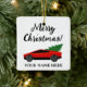 Red Tesla pickup truck with Christmas tree retro Ceramic Ornament