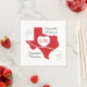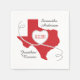 A casual and fun way to share your joy on your big day. Design features a large state shape with a heart made from a white ribbon with black dashes. Space inside the heart for your date and at the bottom for your location. Perfect mix of classy and rustic for any Texas wedding! Available in red, blue, and yellow. Matching products available.