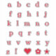 Gorgeous red lower case font typography monogram letters alphabet sticker pack for monogramming, personalising, customising, note writing, journals, notebooks, and more. This set also includes an exclamation point, heart, flower, and star.