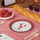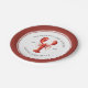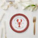 Personalised Lobster themed food paper plates for your next Lobster Bake Party or seafood event. It features a watercolor styled illustration of a crimson lobster. Surrounding this are spots for your unique event information on this tableware.