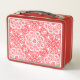 What a great way to carry your lunch! This is for the child who appreciates beautiful design. Or you might use it for school supplies. This metal Lunch box has a pretty pattern of handmade red and white tiles. It comes from an original tile, by Oregon tile maker Fay Jones Day. You are going to get so many comments when you carry this lunch box!