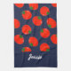 Add your name on this red tomatoes on blue background pattern design.
