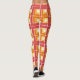 This leggings has a geometric design of L's in red, orange, and yellow, placed in different directions on a field of white.