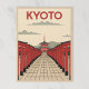 Minimalist retro of Kyoto with rows of iconic red torii gates and temple backdrop.