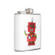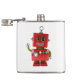 Red toy robot waving hello hip flask