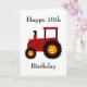 Greeting card red tractor design age specific birthday card. Customise this birthday card with any text then have it printed and sent to you or instantly download it to your mobile device. Should you require any help with customising then contact us through the link on this page. Tractor design personalised 10th birthday card that you can have printed or instantly downloaded