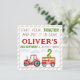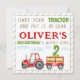 Red tractor 1st 2nd boy birthday square invitation