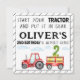 Watercolor red tractor boy 1st or 2nd birthday party invitation, square invite.
