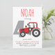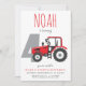 Red Tractor Fourth Birthday Invitation