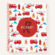Red Transport Fire Truck Engine Brigade Monogram Notebook