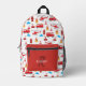 Red Transport Fire Truck Engine Brigade Monogram Printed Backpack