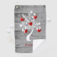 Personalise a unique towel for golfing with a Red Tree of Hearts Personalised Golf Towel. Towel design features a blooming hearts tree against a grey wooden background with an area to personalise with your name. Additional gift items available with this design as well as a variety of colours.