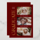 This stylish graduation announcement also doubles as an invitation to a graduation party. The front features the word graduate in the foil colour of your choice on a dark red background. It also has space for three photos as well as the graduate's name, class year, and school. The back of the card has space for another photo as well as details for your graduation party.