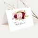 This red tropical and romantic maid of honor thank you card is perfect for a destination wedding. The artistic bordo marsala design features watercolor, green, pink, burgundy and blush roses assorted with greenery neatly arranged in a graceful and radiant flower bouquet.