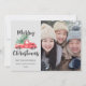 This red truck and tree Christmas photo card is the perfect modern yet vintage style holiday greeting. The design features a classic old red pickup truck carrying a Christmas tree with the words "Merry Christmas" in a modern hand lettered font. Personalise the card with your family name, first names, and year.