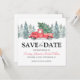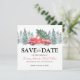 Rustic winter wedding save the date cards featuring a simple white background, watercolor christmas spruce trees, a vintage red truck, a xmas tree, and a traditional save the date template that is easy to personalise.