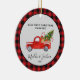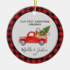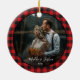 Red Truck First Christmas Engaged Photo Plaid Ceramic Ornament