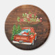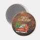Red Truck Pine Tree Merry Christmas Wood Magnet