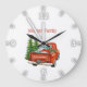 Red Truck Pine Trees Christmas Large Clock