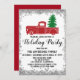 Red Truck Xmas Tree Christmas Holiday Party Silver Invitation