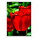 Group of three red tulip flowers against green sunlit background. Textured stylised photography. Text - Puzzle - added to some t-shirt products.