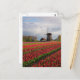 Red tulips and a windmill postcard