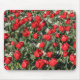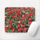 An attractive photo of red Tulips bending in the breeze along with white Primroses.