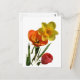 Red tulips and yellow daffodil flowers postcard