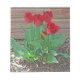 It's a digital recreation from a photograph of deep red tulip flowers in bloom. It was designed to look like a classic floral painting and was created by S.D. Kelley.