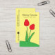 A modern business card showcasing an original illustration by Mango Moon Studio featuring two striking red tulips against a cheerful yellow background in the grass, creating a visual masterpiece that beautifully captures the spirit of your florist shop. Add your florist shop's name, tagline, hours, and contact details.
