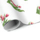 This wrapping paper features a red tulip flowers in bloom pattern on a white background.